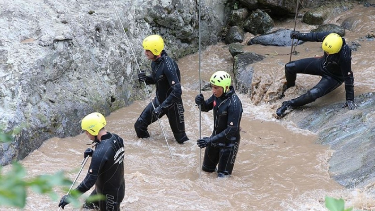 Arama kurtarma timleri, Çamlıktepe Mahallesi'nden geçen Kara Dere'nin yanı sıra kaya dipleri ve çalılık alanlarda tarama yapıyor.