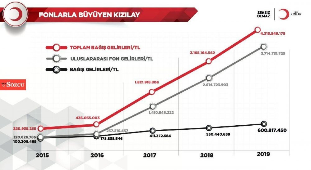 Bu bağışın kendi üzerinden yapılmasına vesile olan Kızılay, Sözcü gazetesine 'Kızılay 3 yılda 6.5 milyar lira dağıttı, paralar nereye gitti?' başlıklı haber nedeniyle gönderdiği açıklamasında, 5 yıllık dönemde 5 iş insanı ve 11 şirketten toplam 50 milyon 852 bin liralık 'özel şartlı bağış' aldığını duyurdu.