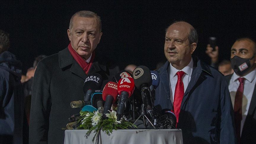 Erdoğan ve KKTC Cumhurbaşkanı Ersin Tatar, burada birer açıklama yaptı.