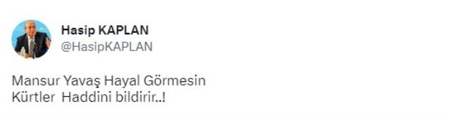 Mansur Yavaş'ın bu çıkışına HDP cephesinden ilk yorum Hasip Kaplan'dan geldi. Sosyal medya hesabından paylaşımda bulunan Kaplan, "Mansur Yavaş hayal görmesin. Kürtler haddini bildirir" ifadelerine yer verdi.