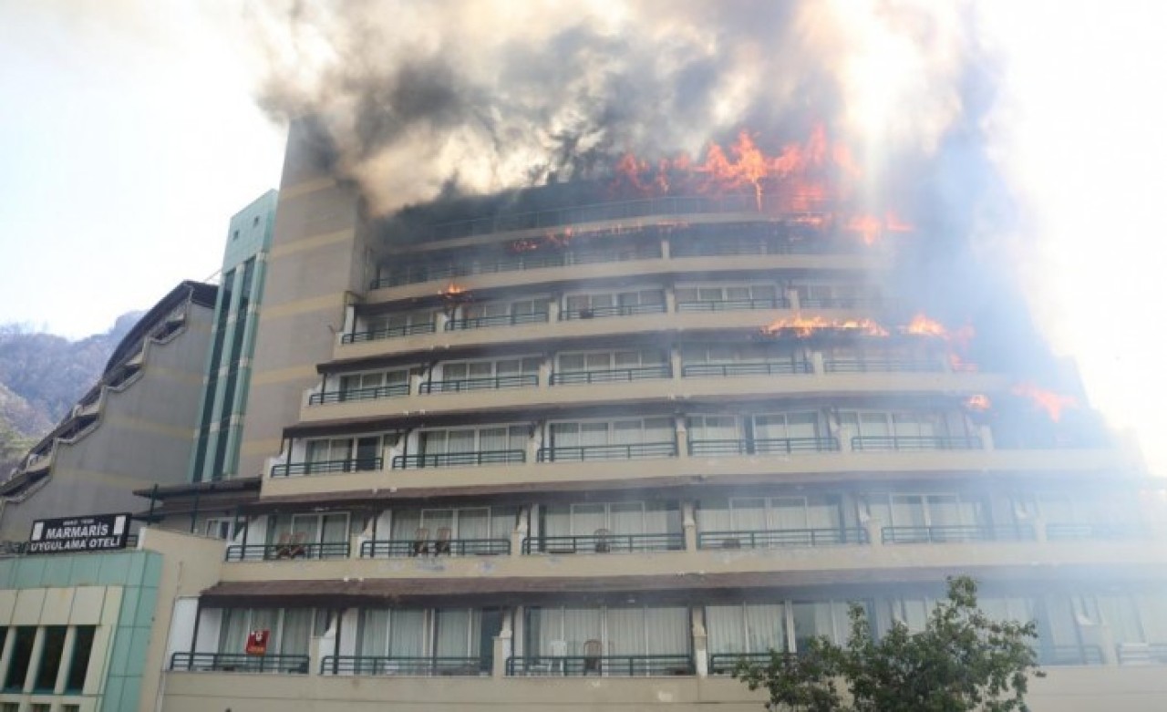 Muğla'nın Marmaris ilçesinde ormanlık alanda çıkan yangın kontrol altına alındı. Yangın nedeniyle Muğla Sıtkı Koçman Üniversitesi Marmaris Uygulama Oteli tahliye edildi. Yangın otele zarar verdi ve yangında bölgedeki birçok otomobil zarar gördü.
