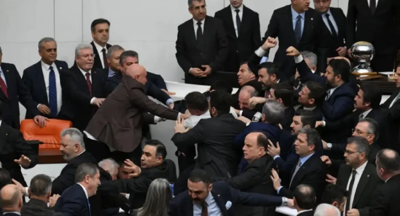 Bozdağ’ın yemin çağrısını yinelemesi üzerine muhalefet milletvekilleri kürsüyü işgal etti. Kürsü önünde toplanan vekiller arasındaki sözlü tartışma kısa süre içinde arbedeye dönüştü. Görüntülerde bazı milletvekillerinin birbirlerini yumrukladığı görüldü. Bozdağ bunun ardından birleşime ara verdi.