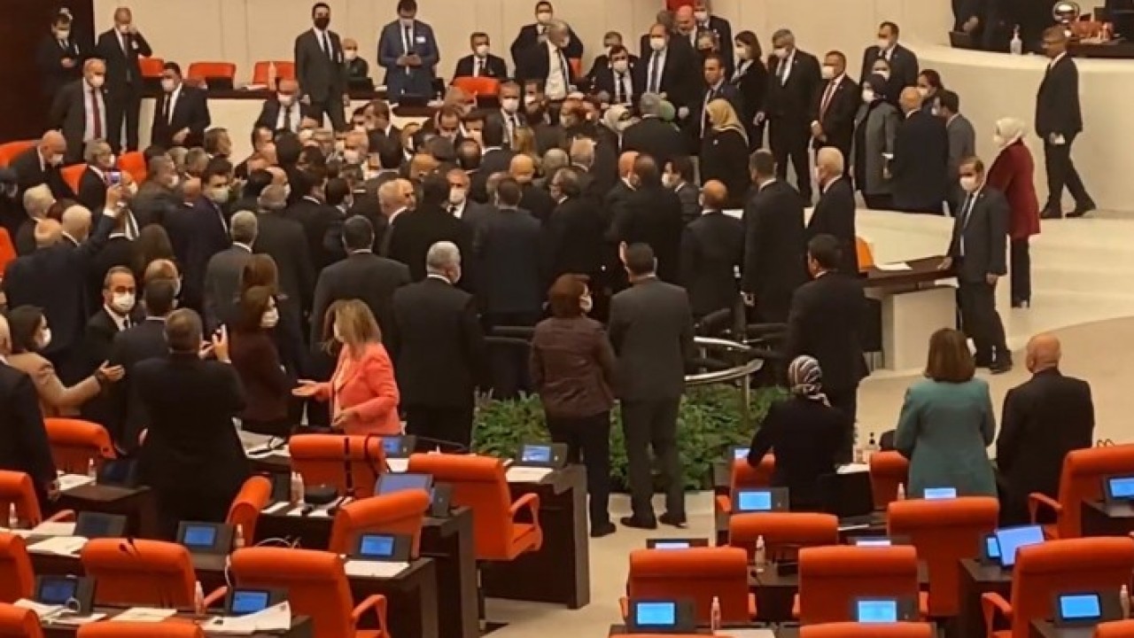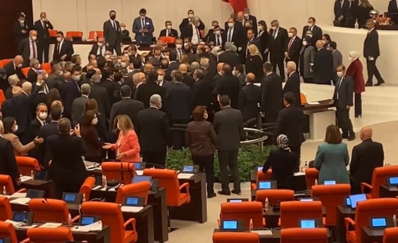 Tartışma yumruklu kavgaya döndü. AK Parti ile CHP'li milletvekilleri birbirine girdi. Kavga üzerine oturuma ara verildi.