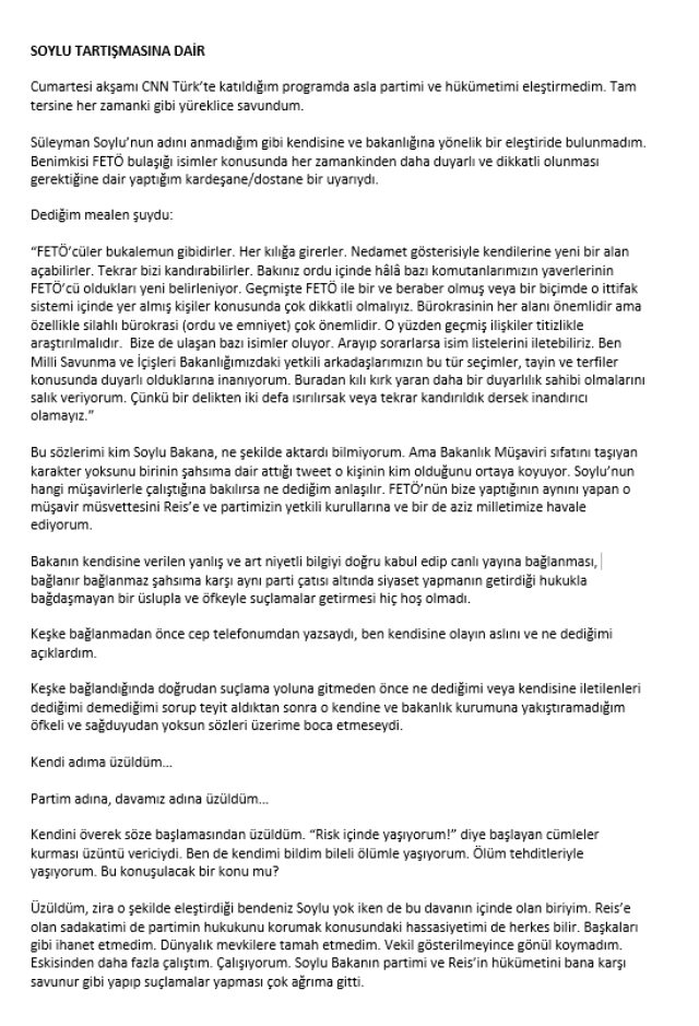 AK Partili eski milletvekili Mehmet Metiner, dün akşam CNN Türk canlı yayınında "FETÖ'cüler göreve getiriliyor" deyince İçişleri Bakanı Süleyman Soylu yayına bağlanmıştı.