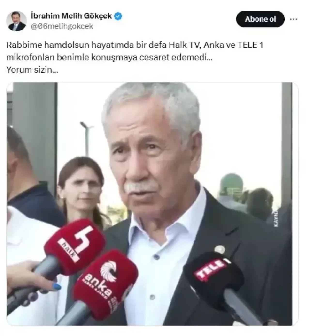 “Rabbime hamdolsun hayatımda bir defa Halk TV, Anka ve TELE 1 mikrofonları benimle konuşmaya cesaret edemedi. Yorum sizin.”