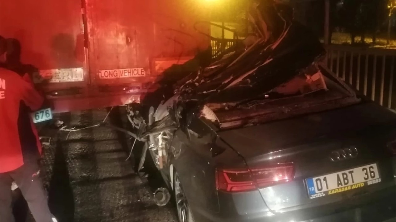 Mersin'de Ömer Karadağ'ın kullandığı otomobil Tarsus Organize Sanayi Bölgesi 1. etap bağlantı köprüsünde tıra arkadan çarptı.
