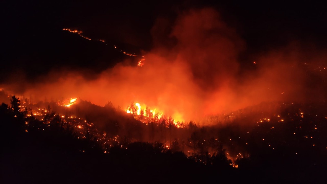 Yangına karadan müdahale devam ederken, bölgeye yönlendirilen gece görüşlü helikopter de alevlere havadan müdahalede bulunuyor.