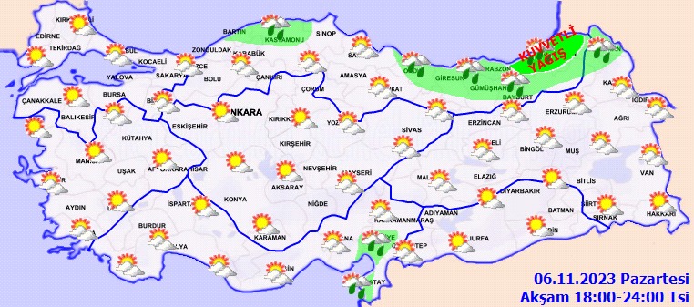 KUVVETLİ YAĞIŞ UYARISI: Yağışların; Rize ve Artvin çevrelerinde yer yer kuvvetli olması beklendiğinden yaşanabilecek olumsuzluklara karşı dikkatli ve tedbirli olunması gerekmektedir.