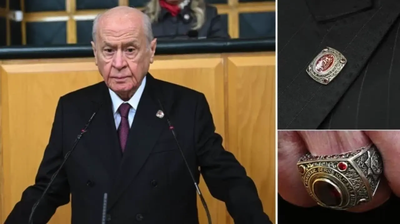 MHP Genel Başkanı Devlet Bahçeli’nin TBMM’de gerçekleştirilen grup toplantısında yaptığı konuşmanın yanı sıra taktığı yüzük ve rozet de dikkat çekti. Toplantıda iç ve dış politikaya ilişkin değerlendirmelerde bulunan Bahçeli’nin kullandığı aksesuarlar, kamuoyunda öne çıkan detaylar arasında yer aldı.