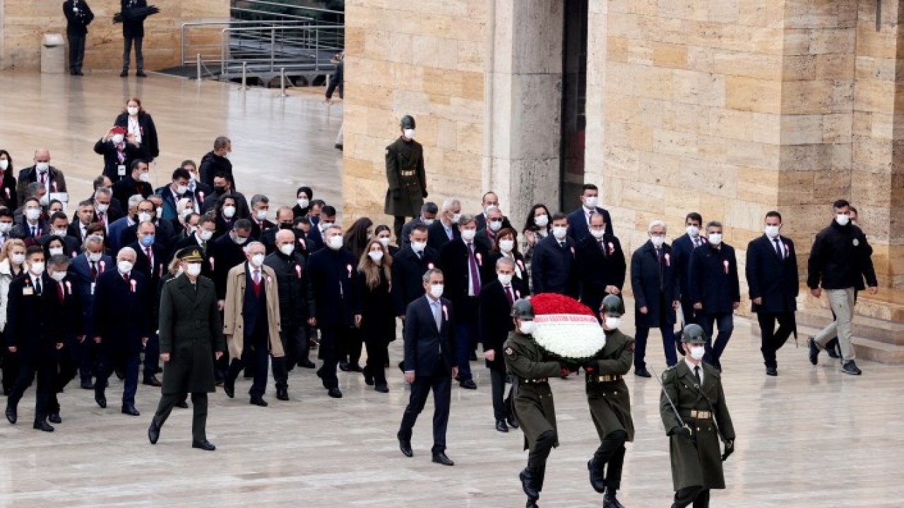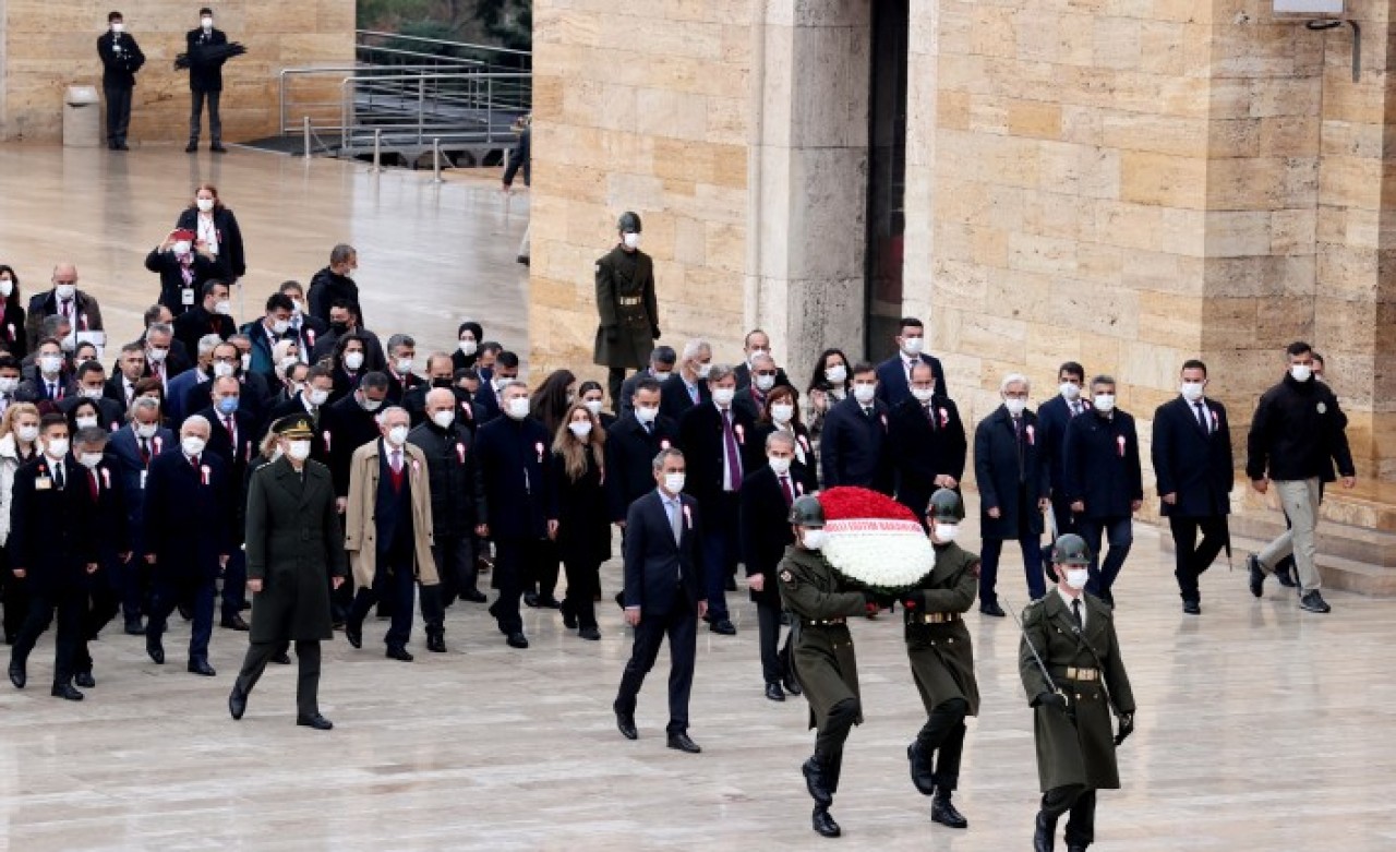 Bakan Özer'in mozoleye çelenk bırakmasının ardından saygı duruşunda bulunuldu.