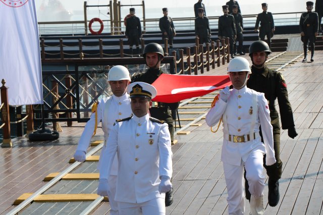 Törenin ardından, Atatürk'ün Samsun'da ilk adımı attığı yeri temsil eden Tütün İskelesi'ndeki programa geçildi. Deniz Kuvvetleri Atatürk Rallisi kapsamında İstanbul'dan 16 Mayıs'ta yola çıkan yelkenliler su takı ile karşılandı. Sahil Güvenlik Komutanlığı gemisinin geçişinin ardından, iskeleden bayrak çıkışı yapıldı.