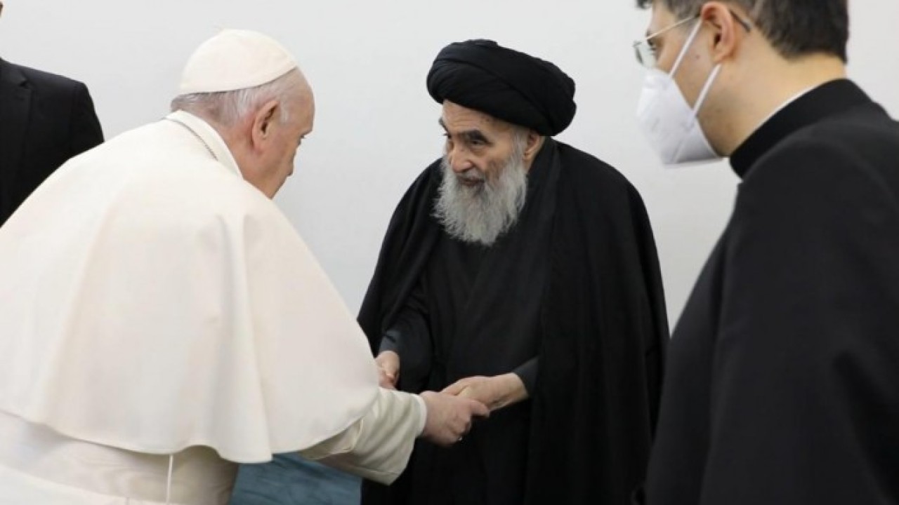 Papa Fransuva’nın Necef’e giderek Şiiler’in en yüksek dinî otoritelerinden olan Ayetullah-ı Uzmâ Ali Sistanî ile görüşmesinin ve Sistanî’den “Etrafını aydınlatan irfan sahibi bir fener” şeklinde sözlerle bahsetmesinin sebebi bu düşünce idi... Necef’te de Papa’nın gelişinden önce her taraf Hazreti Ali’nin Mısır’a gönderdiği kumandanı Eşter en-Nehâî’ye yazdığı mektupta geçen “İnsanlar iki sınıftır: Ya dinde kardeşin veya yaratılışta eşindir” mânâsına gelen “Feinnehum sınıfanu: İmmâ ahun leke fi’d-dini, ve immâ nazîrun leke fi’l-halkî” şeklindeki sözü ile donatılmıştı.
