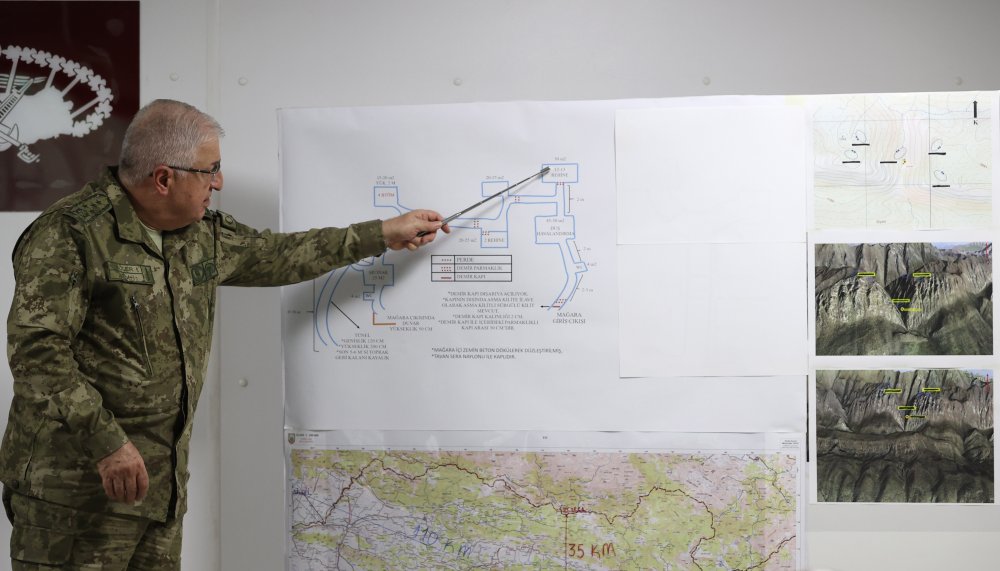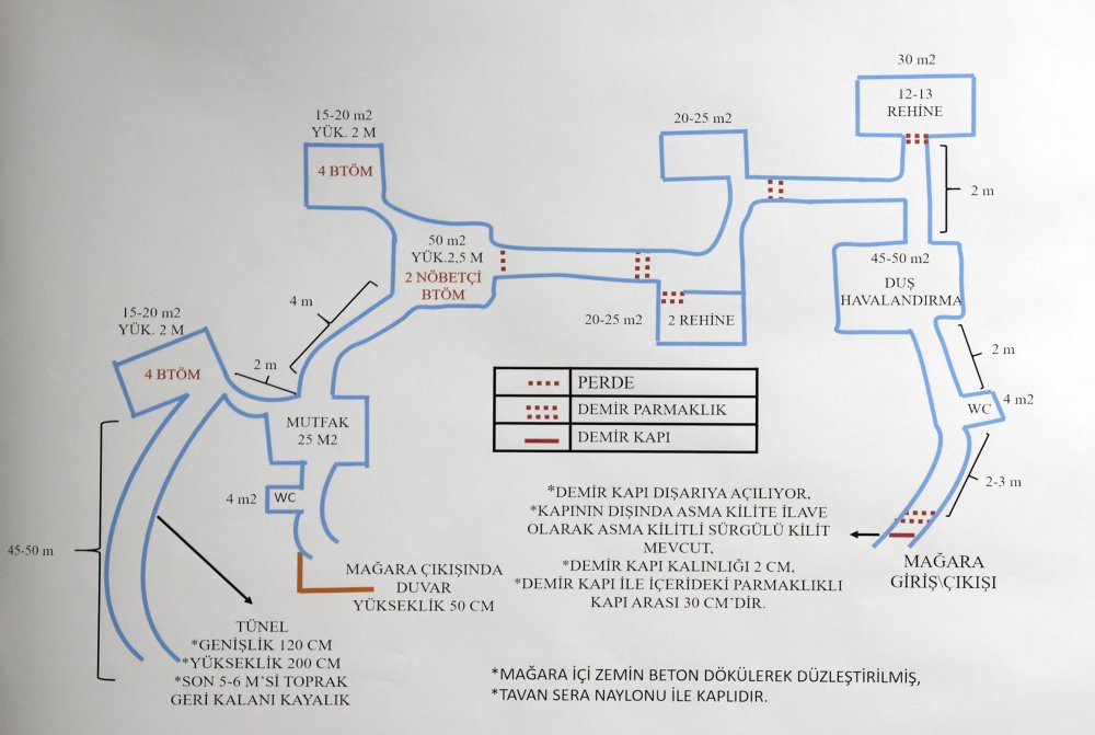 "Mağarada 3 giriş, 9 oda ve 7 tane de demir kapı var. Ayrıca mağaranın içerisinde sürekli zikzaklar var. Bazı noktalar da 1.20 metre yüksekliğinde, insanların sadece sürünerek veya çömelmiş vaziyette yürümek zorunda olduğu bir yapı oluşturulmuştur. Belli ki uzun bir süre çalışmadan sonra bu mağara meydana getirilmiş. 3. gün akşamüstü mağaradan kaçmaya çalışan bir terörist, unsurlarımız tarafından yakalanmıştır. 4. gün, yani bugün yine aynı noktadan sabah aynı şekilde kaçmaya çalışan başka bir terörist de ele geçirilmiştir. Bu teröristler içerde toplam 8 teröristin olduğunu açıklamıştır."