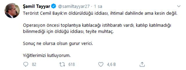 Konuyla ilgili resmi bir açıklama yapılmazken, AK Partili eski milletvekili Şamil Tayyar, sosyal medya hesabından bir mesaj paylaştı.