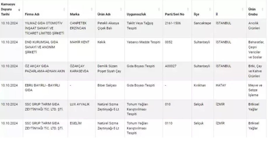Tarım ve Orman Bakanlığı, taklit ve tağşiş yapan ürünlerle ilgili listesini sürekli güncelleyerek denetimlerini sürdürüyor. Son testlerde, salça, bal, zeytinyağı ve kekik gibi ürünlerde sahtecilik tespit edildi.