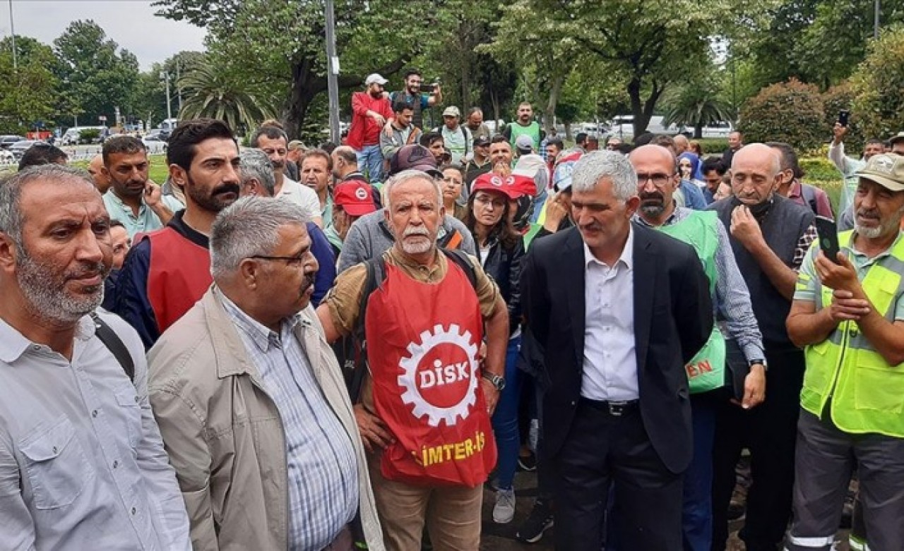 İşçiler burada basın açıklaması yaparak tepki gösterdi.