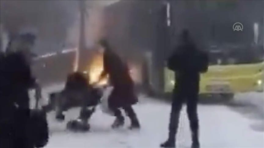 Alınan bilgiye göre, Meserburnu Caddesi'nden Sarıyer'e doğru seyreden İETT otobüsü, kar yağışı nedeniyle kayganlaşan yolda karşı şeritten gelen başka bir İETT aracına çarptı.