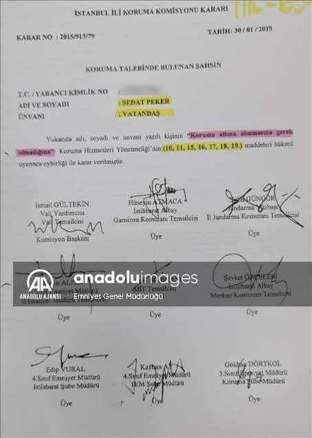 Emniyet Genel Müdürlüğü kaynaklarına göre, İstanbul İl Koruma Komisyonu 6 Mart 2015'te toplanarak Peker için polis yakın koruma kararı aldı.