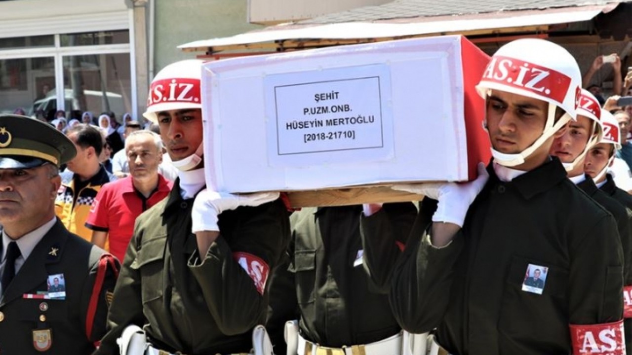 Anne Ayşe Mertoğlu, şehit oğlunun tabutuna sarılarak, "Son gelişin böyle mi olacaktı oğlum." diye gözyaşı döktü.