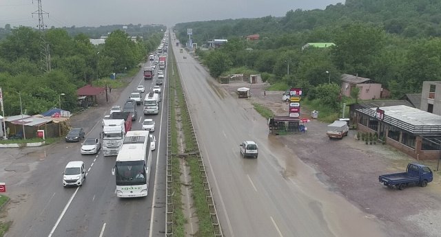 Düzce'nin Akçakoca ilçesinde de şiddetli yağış hayatı olumsuz etkiliyor. Düzce-Zonguldak Batı Karadeniz bağlantı yolunun Çayağzı ve Beyhanlı köyleri mevkisinde su birikintileri oluştu. Biriken sular yüzünden zor anlar yaşayan sürücülerden bazıları, araçlarını yol kenarına park etmek zorunda kaldı.