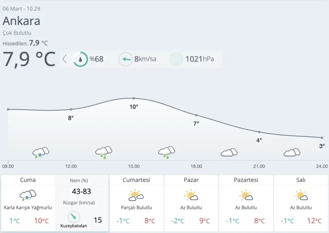 Başkent Ankara'da ise hava durumu biraz daha farklı bir seyir izliyor. 6 Mart Cuma günü şehri etkisi altına alması beklenen sağanak yağışlar, özellikle öğle saatlerinde kendini gösterecek. Bu nedenle, dışarıda geçirecek olanların yağmura karşı tedbirli olmaları önemli. 7 Mart Cumartesi günü ise yağmurun etkisi geçecek ve kısmen güneşli bir hava bekleniyor. Hafta sonunun son günü olan 8 Mart'ta ise Ankara'da bol güneşli ve açık bir hava görülecek. Bu da doğa yürüyüşleri veya açık hava etkinlikleri için fırsat yaratıyor. Ankara'da hava sıcaklıkları, mevsim normalleri civarında seyredecek; bu yüzden giyimde katmanlı tercih yapmak faydalı olabilir.