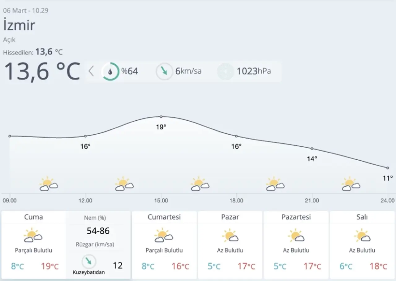 İzmir’deki hava koşullarının bu tarihlerde nasıl şekilleneceği, yerel halk için büyük bir merak konusu. Puslu güneşli ortamın, genel olarak turizm açısından olumlu bir etki yaratacağı düşünülebilir. Hava durumu uzmanları, bu tarz havaların şehirde doğa aktivitelerine katılımı artıracağını ifade ediyorlar. Öte yandan, 6 Mart'ı takip eden günlerde sıcaklıkların daha da yükselmesi bekleniyor. Bu durum, özellikle bahar mevsiminin gelmesiyle birlikte şehri canlandıracak ve dış mekan etkinliklerine katılımı artıracaktır. Deniz sezonunun başlangıcı da dikkate alındığında, birçok kişi kumsalda vakit geçirmeyi düşünmeye başlayabilir.