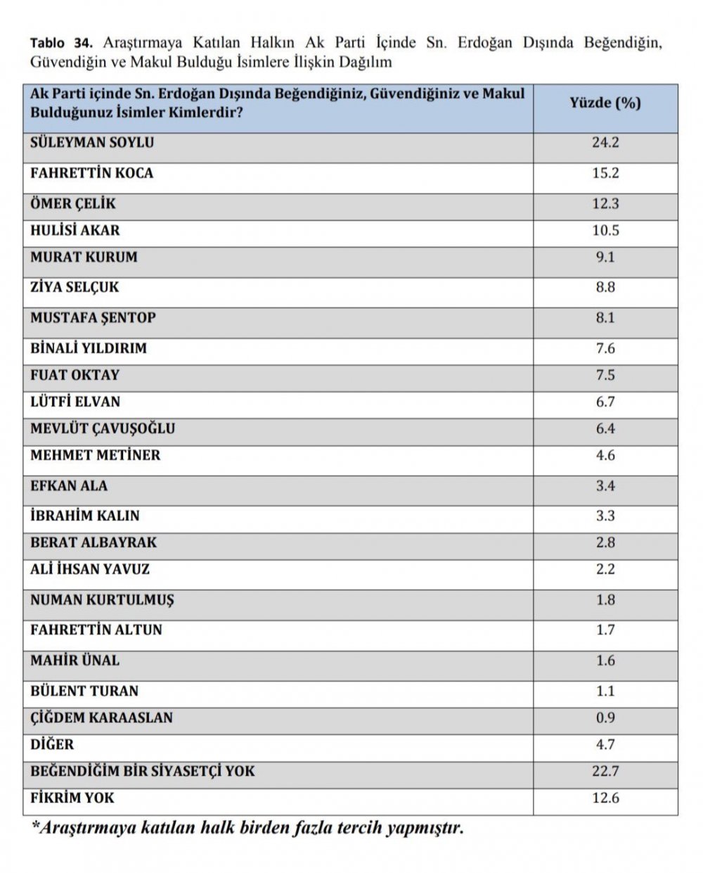 Gezici paylaşımında, ankete katılanlara, “AK Parti içinde Sayın Cumhurbaşkanı Erdoğan dışında beğendiğiniz, güvendiğiniz ve makul bulduğunuz isimler kimlerdir?” sorusunu yöneltti. Ocak 2021’i kapsayan araştırmada birinci çıkan isim ise Süleyman Soylu oldu.