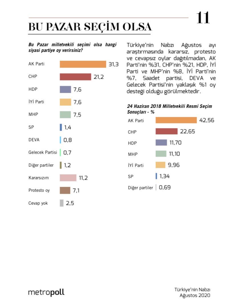 Ankette kararsızların oranı yüzde 11, 2 olarak açıklanırken “Protesto oy kullanacağım” diyenlerin oranı yüzde 7, 1 oranında oldu.