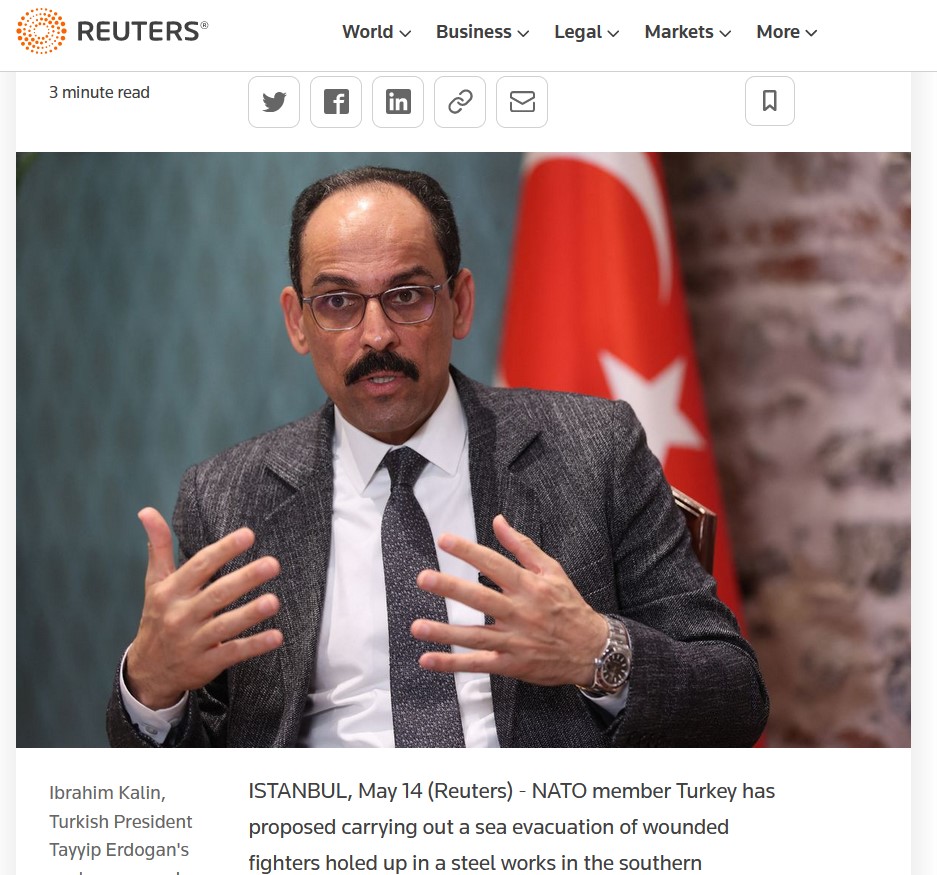 Cumhurbaşkanlığı Sözcüsü İbrahim Kalın, İngiliz haber ajansı Reuters'a verdiği demeçte "Bizim beklentimiz NATO müttefiklerimizden ve diğer ülkelerden, Türkiye’nin ulusal güvenliğine tehdit teşkil eden PKK, FETÖ, DHKP/C gibi terör örgütlerine karşı açık, net tavır almaları ve bunu eylemle net şekilde ortaya koymalarıdır" dedi.