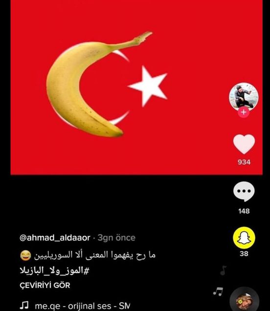 Memleketini terk edip kaçan yavşak grubundan biri, Türk bayrağındaki Ay’ın üzerine muz koyarak instagram üzerinden kendince Türk gençleri ile alay etmiş.