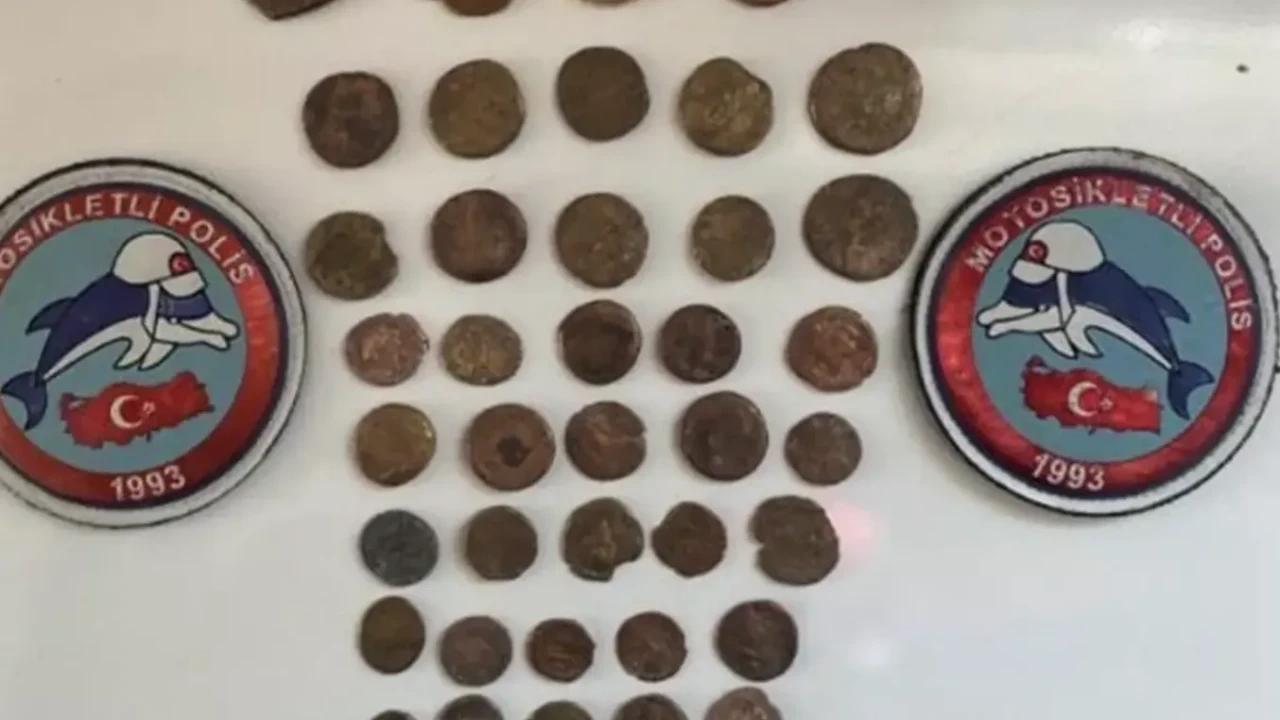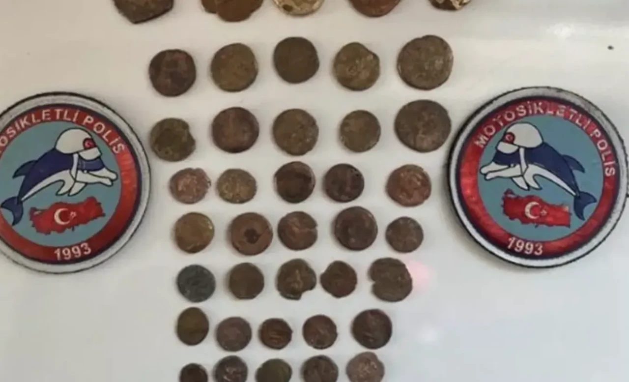 Mardin İl Emniyet Müdürlüğü ekipleri, Artuklu ilçesinde şüpheli bir aracı durdurarak detaylı arama yaptı. Yapılan kontrollerde, farklı renk ve boyutlara sahip 45 sikke ile tarihi eser olduğu değerlendirilen hayvan figürlü bir heykel bulundu.
