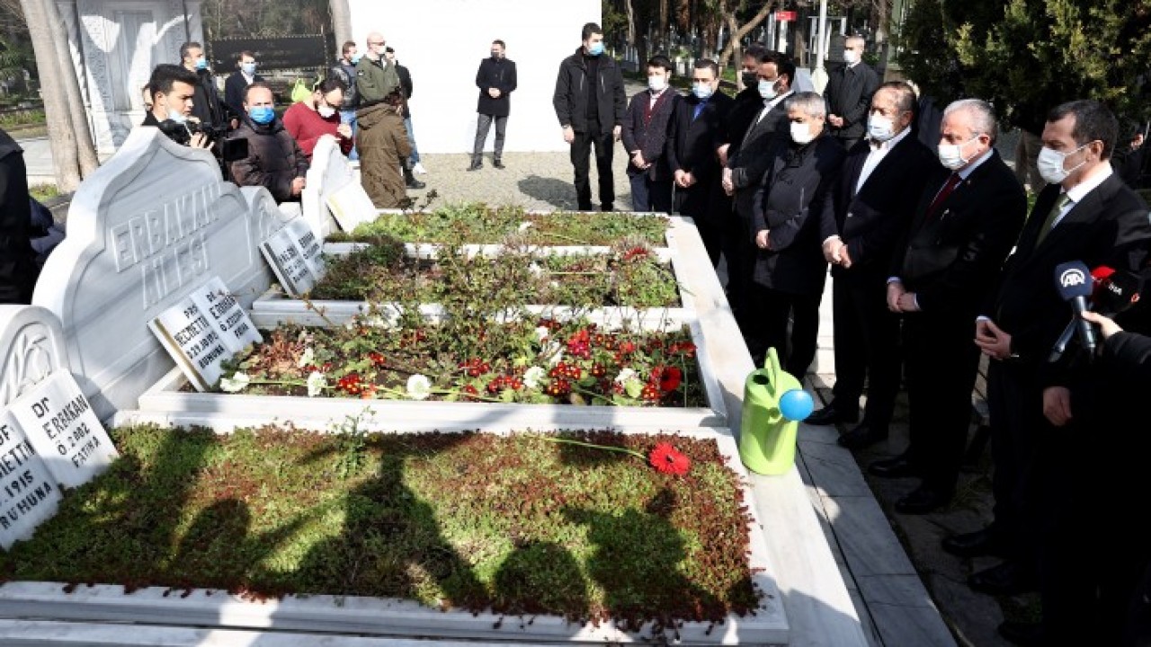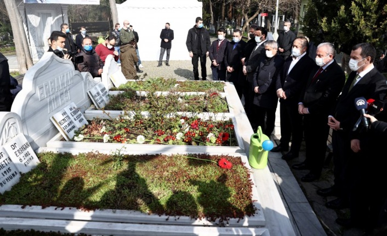 Vefatının 10. yılında kabri başında dua ettiği Erbakan'ın hem akademisyen olarak hem de sivil toplum kuruluşları ve siyasetteki görevleriyle Türkiye'ye büyük hizmetler etmiş, büyük emekler vermiş biri olduğunu belirten Şentop, "Hizmetleri sadece kendi yaptıklarıyla değil, yetiştirdikleri insanlarla ve Türkiye'ye sunmuş olduğu ufukla, projelerledir. Aynen isminde olduğu gibi necmüddindir, yani dinin yıldızıdır." diye konuştu.