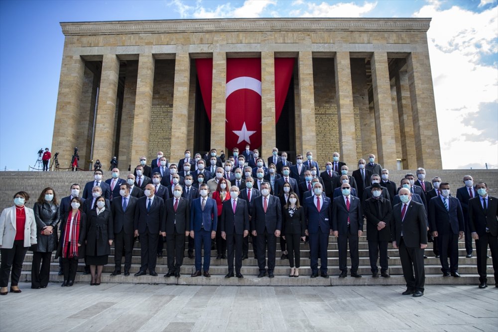 - Aslanlı Yol'dan yürüyerek Atatürk'ün mozolesine gelen heyet, TBMM Başkanı Şentop'un mozoleye çelenk bırakmasının ardından saygı duruşunda bulundu ve İstiklal Marşı'nı okudu.