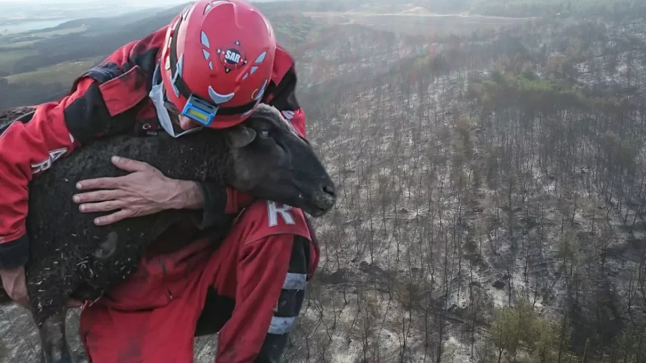 Yangında hayvan çiftlikleri de zarar gördü. Alevlerin ortasında mahsur kalan bir koyun, SAR Arama Kurtarma Derneği gönüllüleri tarafından son anda kurtarıldı. Gönüllüler, dumandan etkilenen ve vücudunda yanıklar bulunan koyunu güvenli bölgeye taşıyarak ilk müdahaleyi gerçekleştirdi.