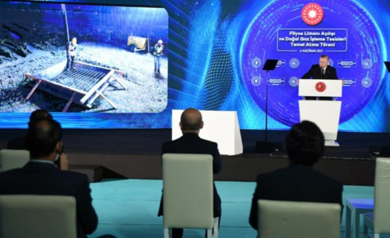 Cumhurbaşkanı Erdoğan Zonguldak'ta yeni bir müjde açıkladı. Karadeniz'de 135 milyar metreküplük gaz daha keşfedildiğini duyuran Erdoğan, müjdenin ardından Filyos Doğal Gaz İşletme Tesisi'nin temelini attı. Erdoğan'ın temel atma sırasında Türkiye Petrolleri Anonim Ortaklığı'nın (TPAO) Genel Müdürü Melih Han Bilgin ile girdiği diyaloğ izleyenleri kahkahaya boğdu.