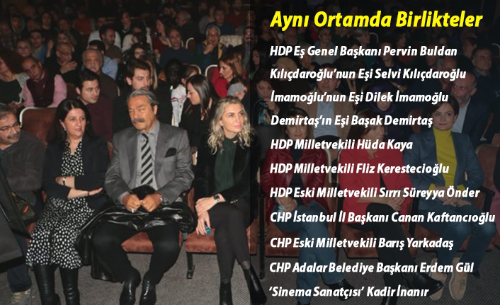 Medya önünde kabul edilmese de perde arkasında kolkola olan CHP ve HDP ittifakı, bir kez daha gözler önüne serildi. HDP'nin terör suçlarından tutuklu eski eş başkanı Selahattin Demirtaş'ın yazdığı “Devran” isimli kitabındaki öykülerin Jülide Kural tarafından sahnelendiği okuma tiyatrosuna, CHP İstanbul İl Başkanı Canan Kaftancıoğlu, Kemal Kılıçdaroğlu’nun eşi Selvi Kılıçdaroğlu ve Ekrem İmamoğlu’nun eşi Dilek İmamoğlu katıldı. Tiyatroda Kadir İnanır ve CHP’li Barış Yarkadaş’ın olması da dikkat çekti.