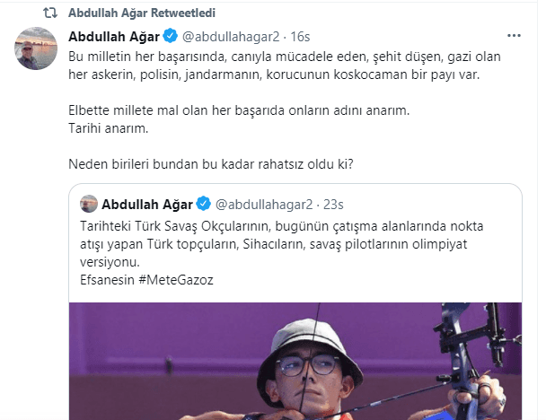 Mete Gazoz’un zaferi sonrası paylaşım yapan Terör ve Güvenlik Uzmanı Abdullah Ağar, yapılan paylaşıma gelen yorumlar sonrası bir açıklama yaptı.