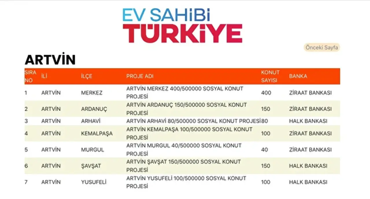 500 bin sosyal konut projesi kapsamında Artvin'de başvuru yapan vatandaşlar kura listelerine odaklandı. Ancak TOKİ, Artvin için kuraya katılmaya hak kazananlar ile başvurusu geçersiz sayılanlara ilişkin isim listelerini henüz kamuoyuyla paylaşmadı. Liste yayınlandığında TOKİ'nin resmi internet sitesi ve e-Devlet üzerinden sorgulanabilecek.