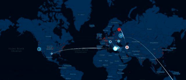 Gün içerisinde Türkiye'ye siber saldırıların devam ettiği sıralarda ABD, Çin, Vietnam, Endonezya ve bazı diğer ülkelerden binlerce saldırı gerçekleşti.
