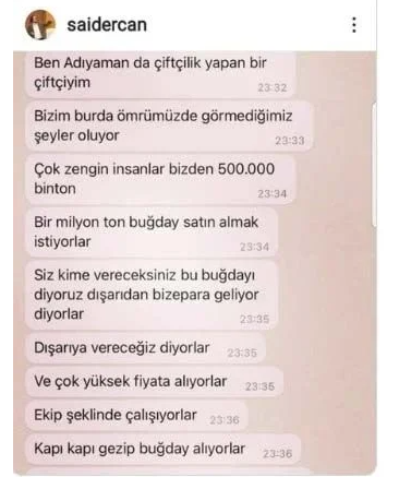 Buğday pazarı Esnafı Yakup Elçi ise, iddiaları duyduklarını ve çiftçilerinde kendilerine bu durumu sorduğunu belirterek, “Çiftçilere bu dedikodulara itibar etmemeleri söyledik. Sosyal medyaya güvenmesinler. İddia edenler yanlış bilgi yaymıştır” diye konuştu.