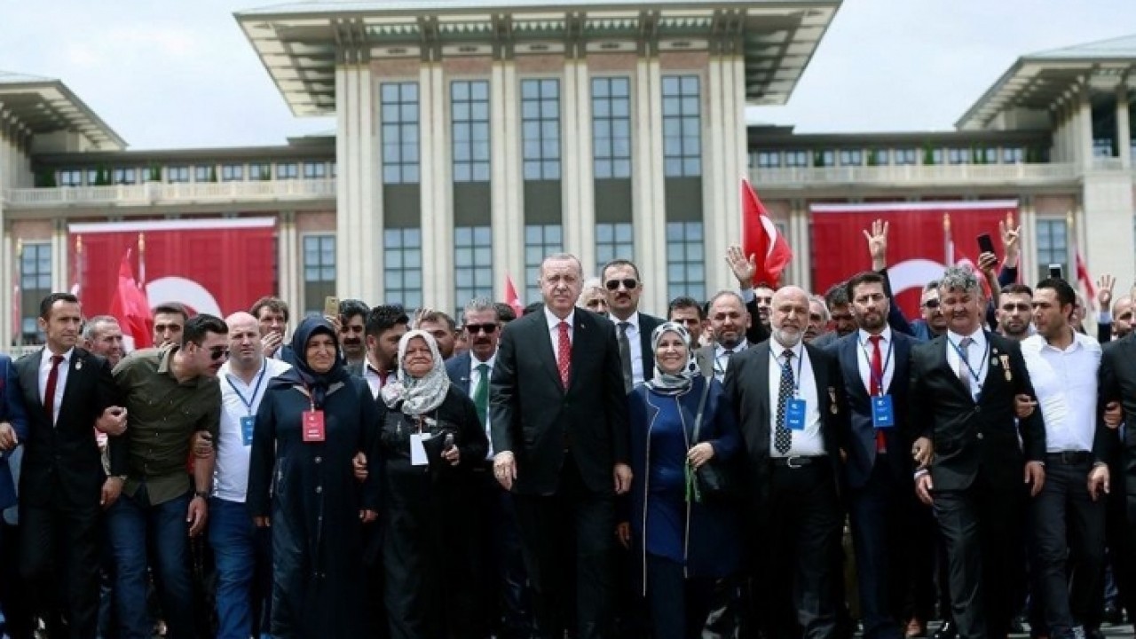 Erdoğan, 15 Temmuz Demokrasi ve Milli Birlik Günü dolayısıyla düzenlenen program kapsamında Cumhurbaşkanlığı Külliyesi önünde kendisini bekleyen 15 Temmuz şehitlerinin yakınları ve gazilerle bir süre sohbet etti.