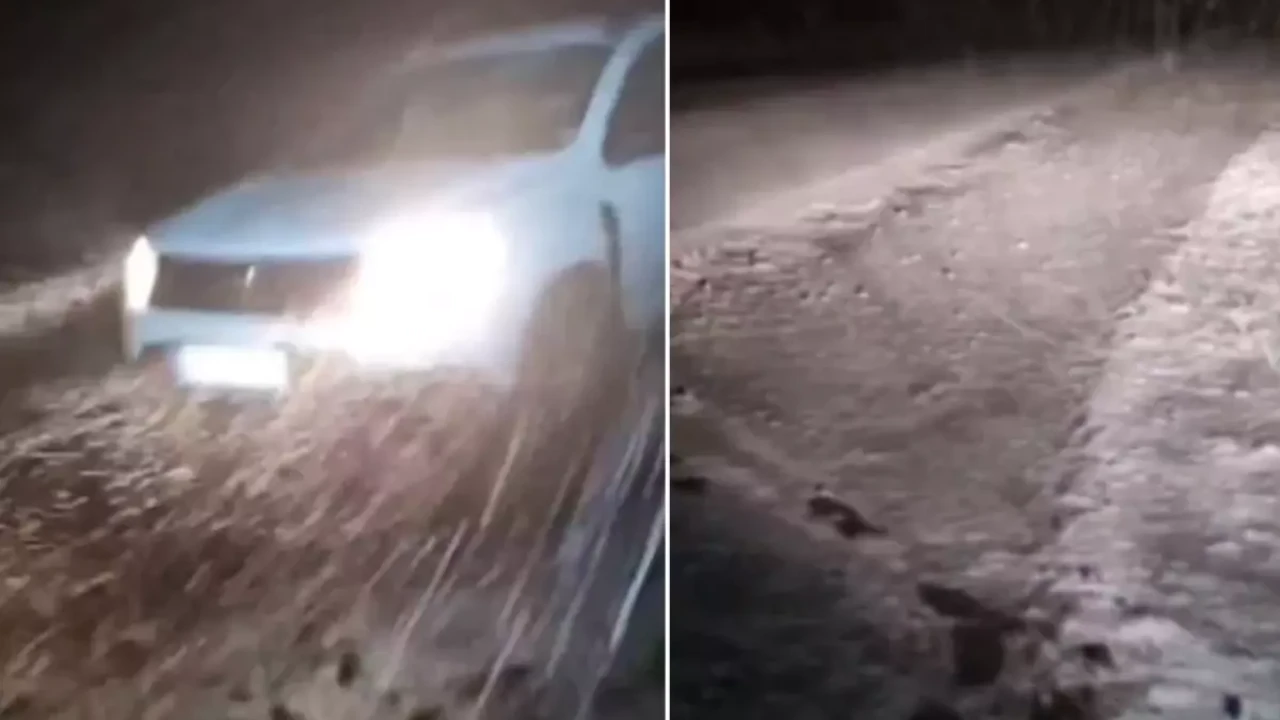 Yaz ortasında yağan karla birlikte yayla yolları kısa süre içinde beyaz bir örtüyle kaplanırken, o anlar kameralar tarafından saniye saniye kaydedildi.