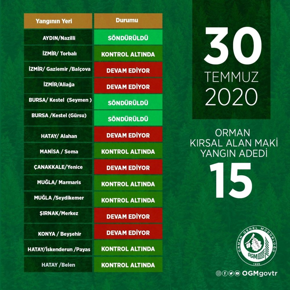 OGM’nin yangınlar hakkında paylaştığı son durum şu şekilde:
