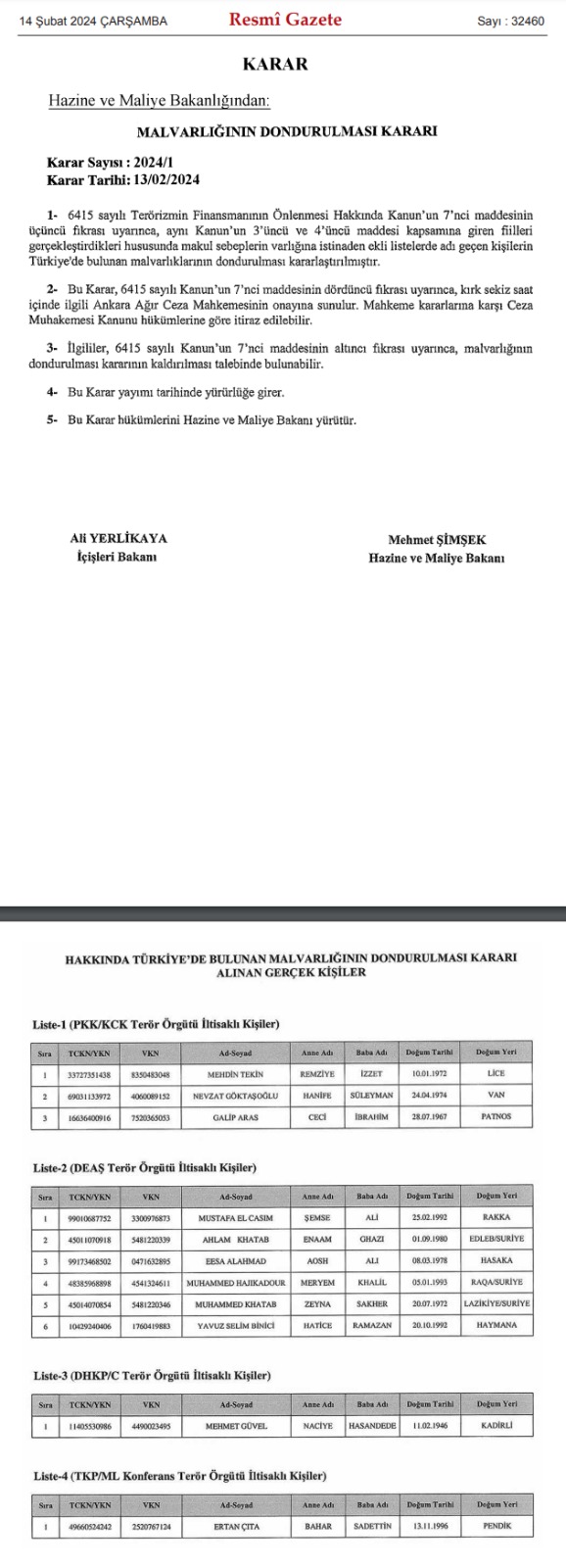 Ortadoğu Gazetesi GÜNDEM Türkiye'de 11 kişinin mal varlığı donduruldu. İşte mal varlığı dondurulan isimler