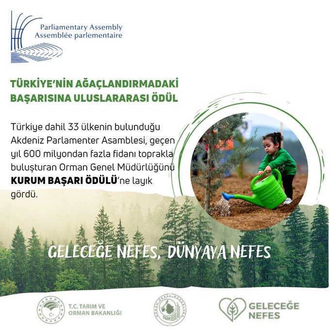 Dünyada iklim değişikliği, kuraklık ve çevre konularının giderek önem kazanması üzerine, 2021 yılında başarılı çalışmalar yürüten Tarım ve Orman Bakanlığı Orman Genel Müdürlüğü, Akdeniz-Pa Türk Delegasyonu Başkanlığı tarafından "Kurum Başarı Ödülü"ne aday gösterildi.