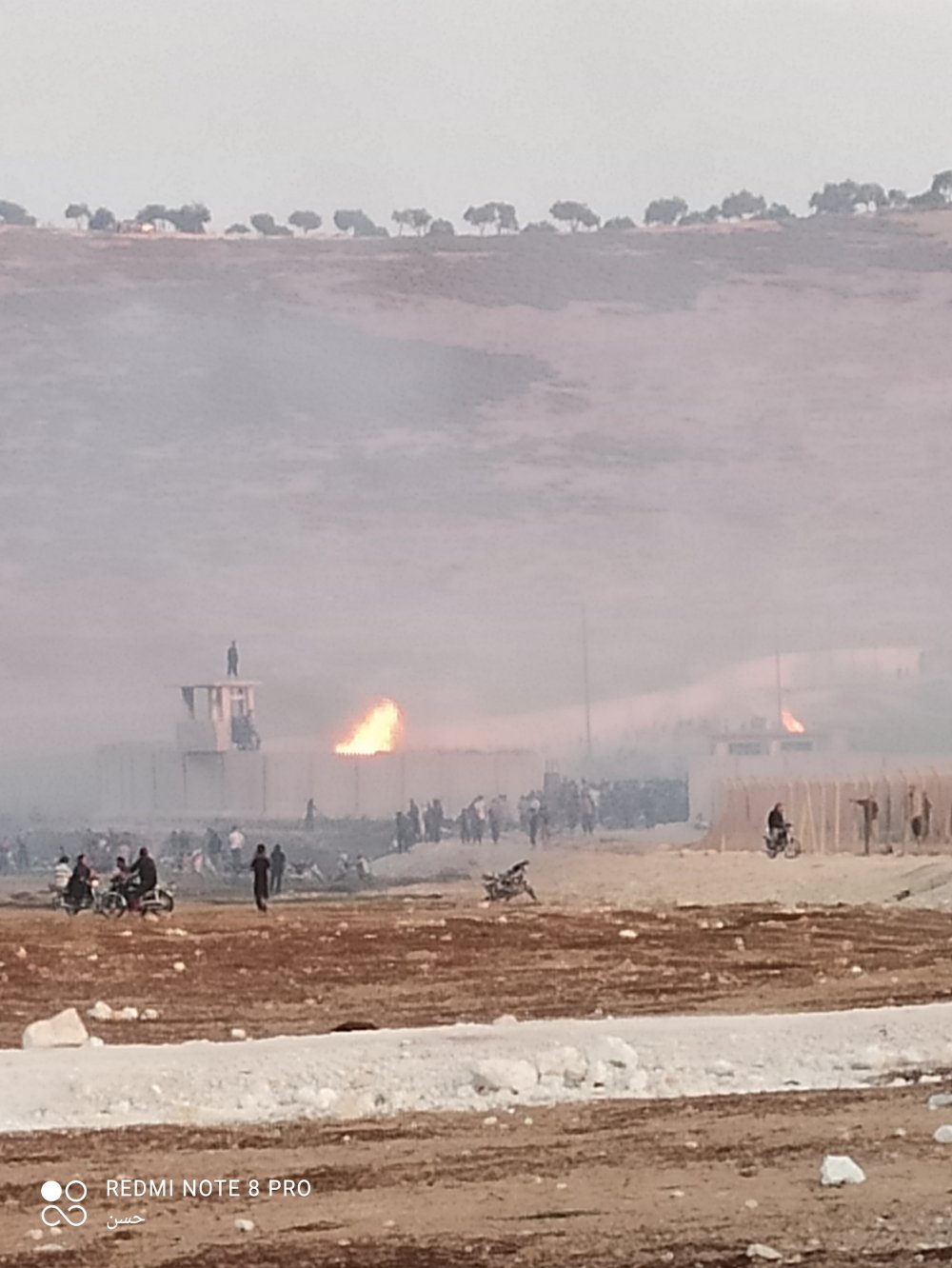 Paylaşılan görüntülerde, bir mültecinin Türk askerinin bulunduğu kontrol noktasına patlayıcı madde atması dikkat çekti.