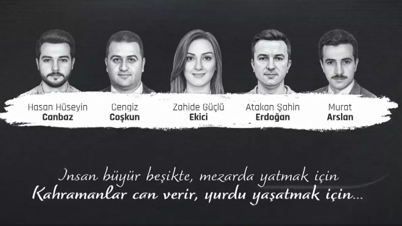 TUSAŞ’ın sosyal medya hesaplarından paylaşılan videoda, “Unutmadık, unutmayacağız” başlığı altında, şehitler Atakan Şahin Erdoğan, Cengiz Coşkun, Zahide Güçlü Ekici, Hasan Hüseyin Canbaz ve Murat Arslan’a yer verildi.
