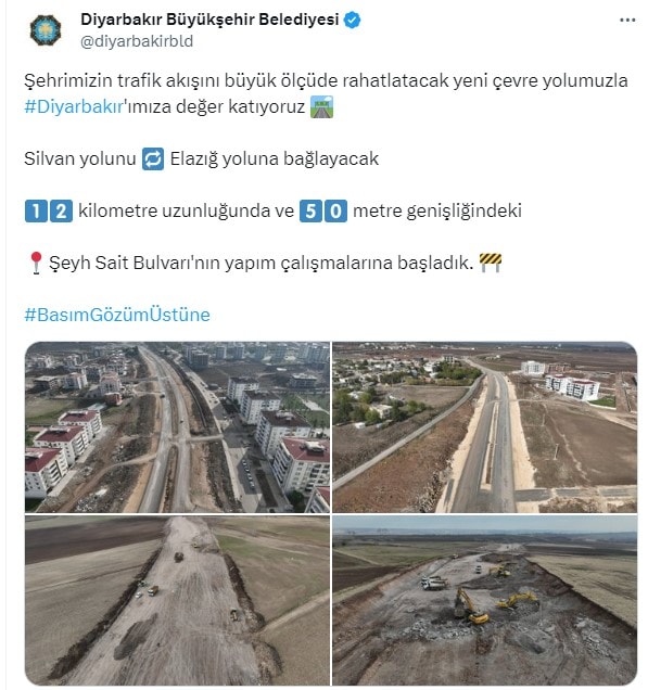 Diyarbakır Belediyesi'nden yapılan duyuruda yapımına başlanan bulvara 'Şeyh Sait' adının verildiği duyuruldu.