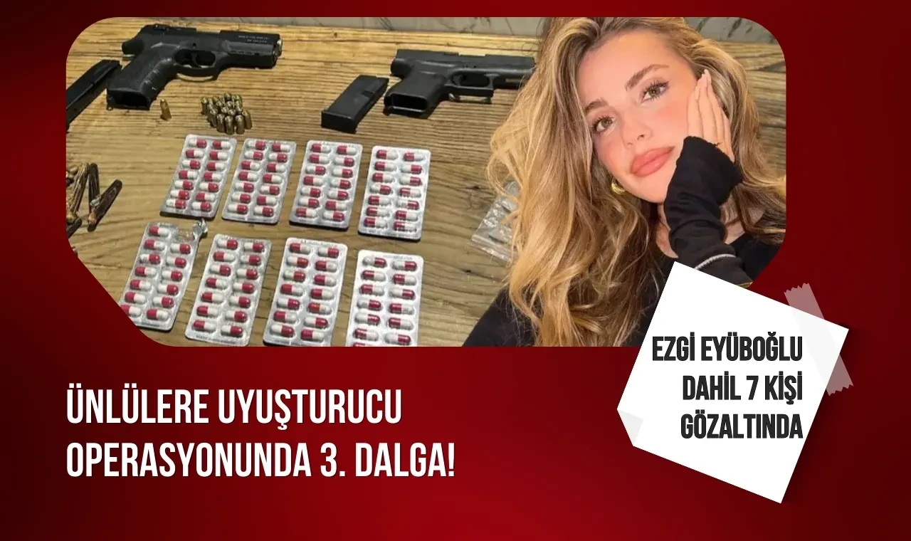 İstanbul Cumhuriyet Başsavcılığı tarafından yürütülen uyuşturucu soruşturması kapsamında medyada tanınan isimlere yönelik üçüncü dalga operasyon düzenlendi. Operasyonda aralarında oyuncu Ezgi Eyüboğlu’nun da bulunduğu 7 kişi gözaltına alındı.