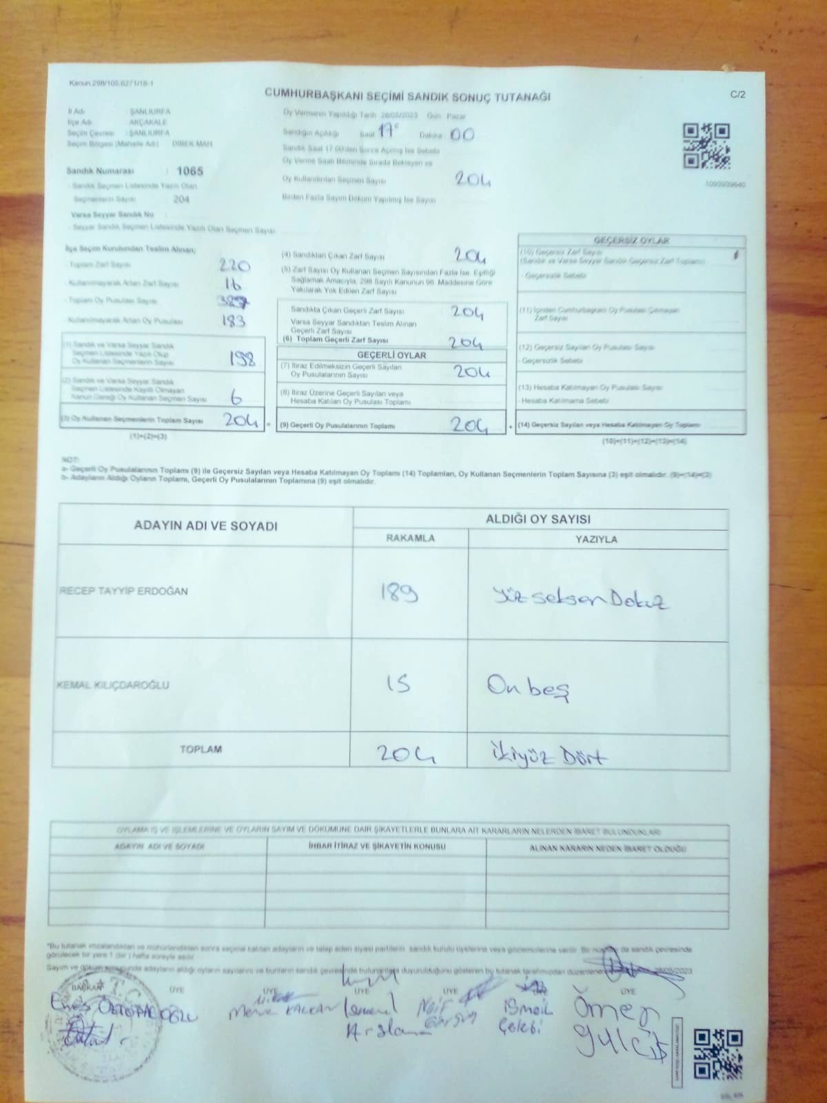 Şanlıurfa'nın Akçakale ilçesinde henüz devam eden oy işlemleri sırasında ıslak imzalı tutanak tutulduğu ortaya çıktı.